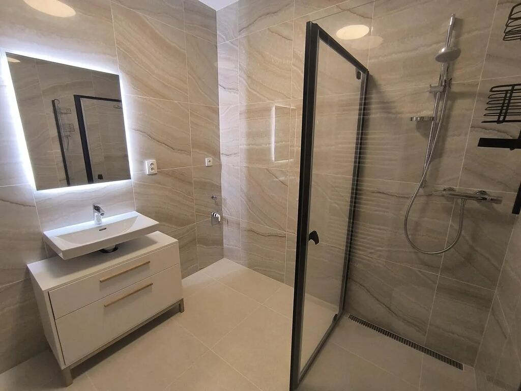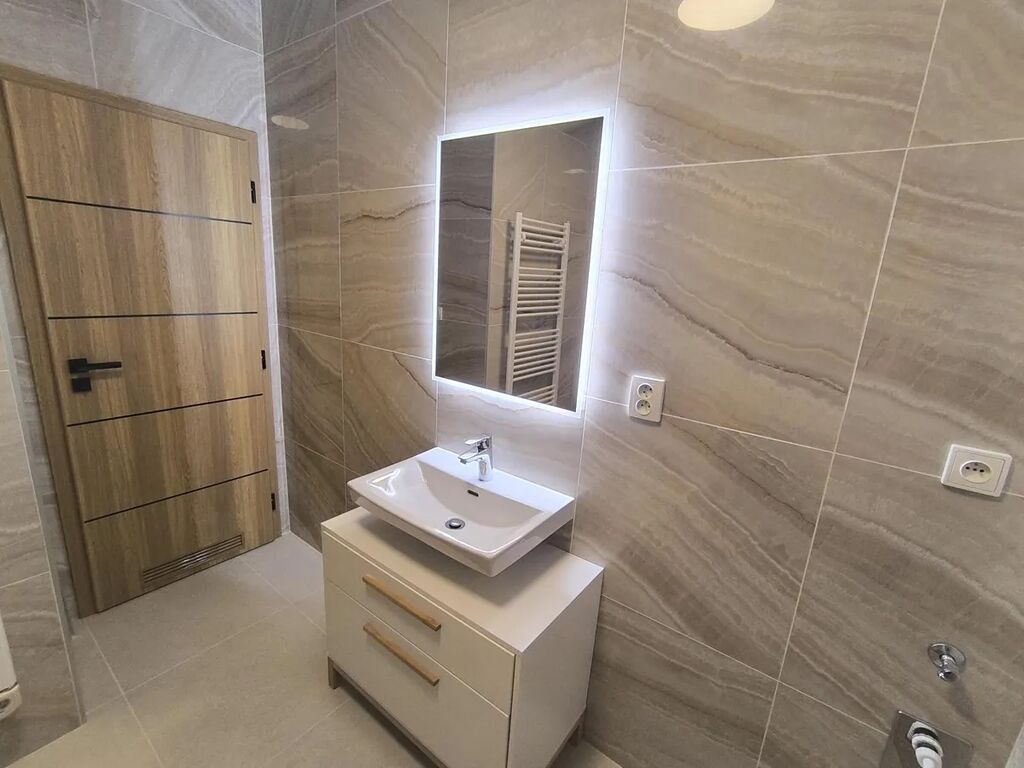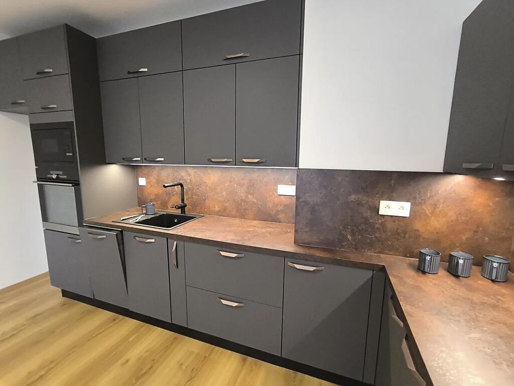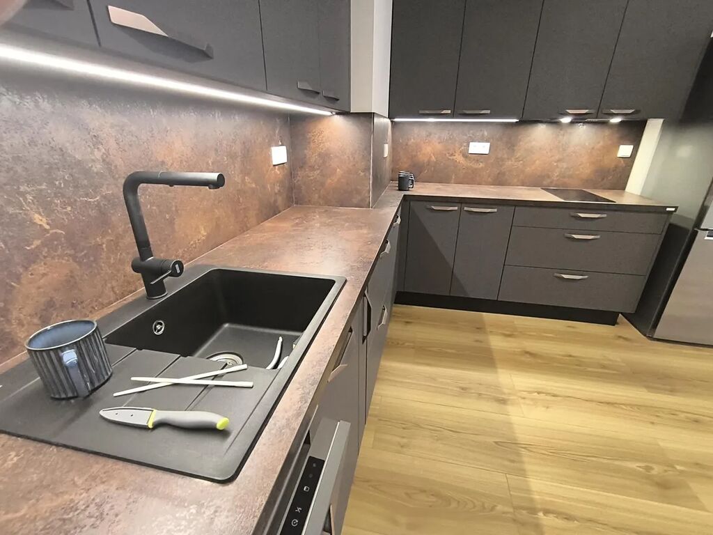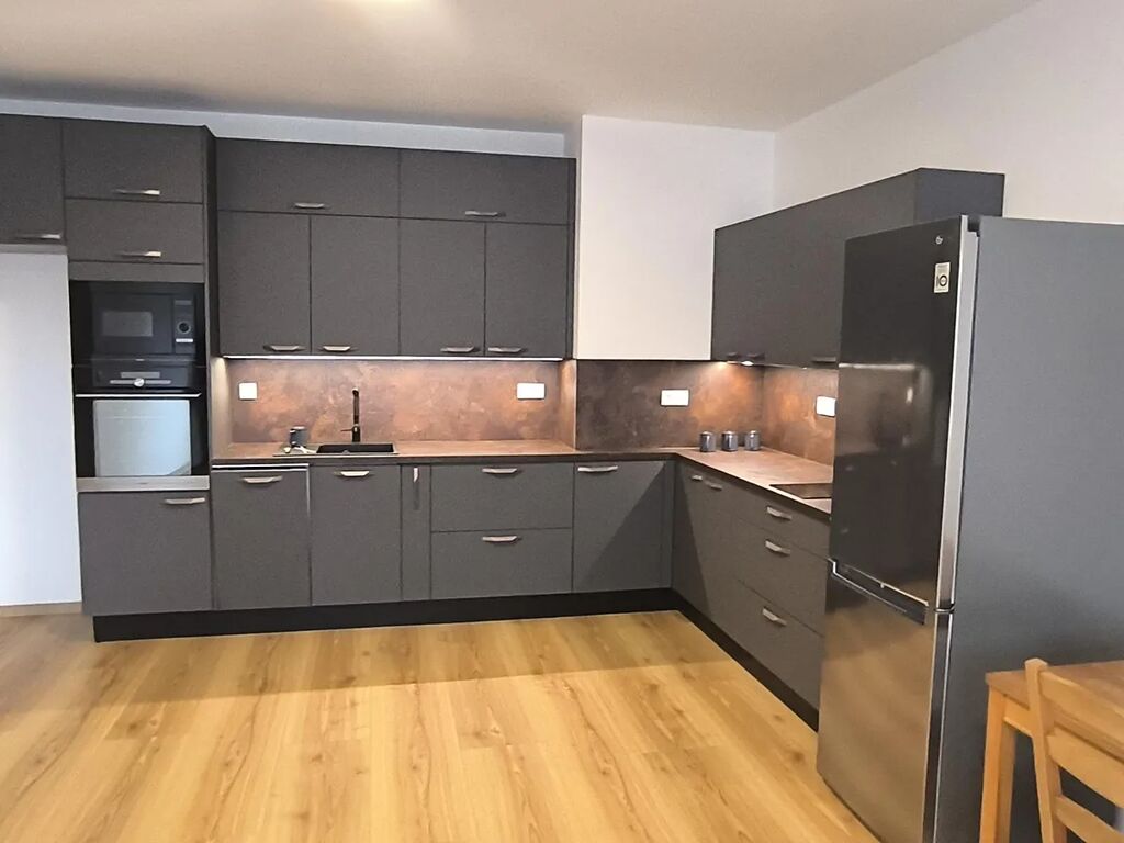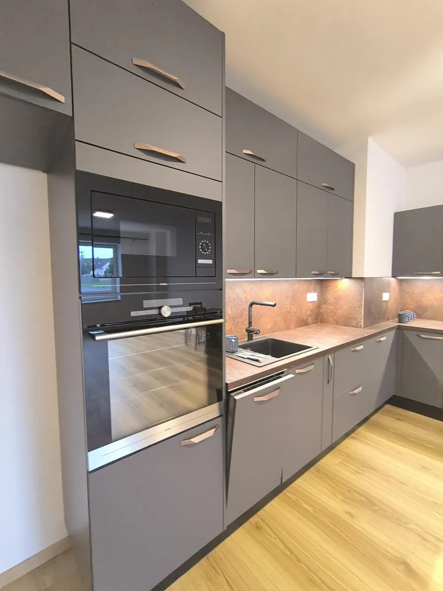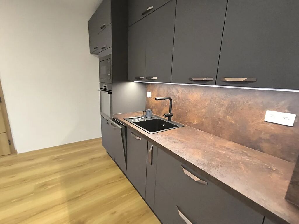 Byt je vybaven moderní kuchyňskou linkou na míru s vestavěnými spotřebiči. Součástí je: