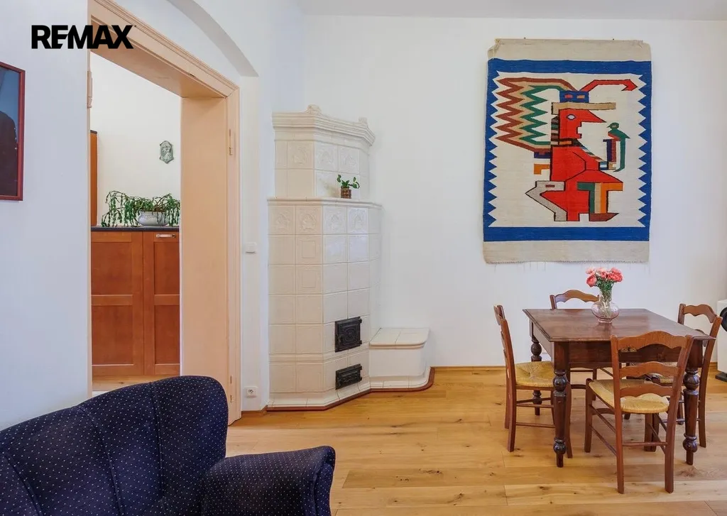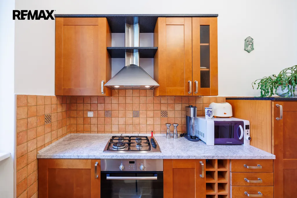Interiér bytu vytváří harmonické spojení elegance a funkčnosti. Vstup do bytu je přes prostornou halu, která navozuje příjemnou atmosféru. V bytě je prostorý obývací pokoj s jídelnou s velkými okny, která propouštějí přirozené světlo. Zařízená kuchyň je vybavena kvalitními spotřebiči a dostatkem úložného prostoru, což ocení každý milovník vaření.