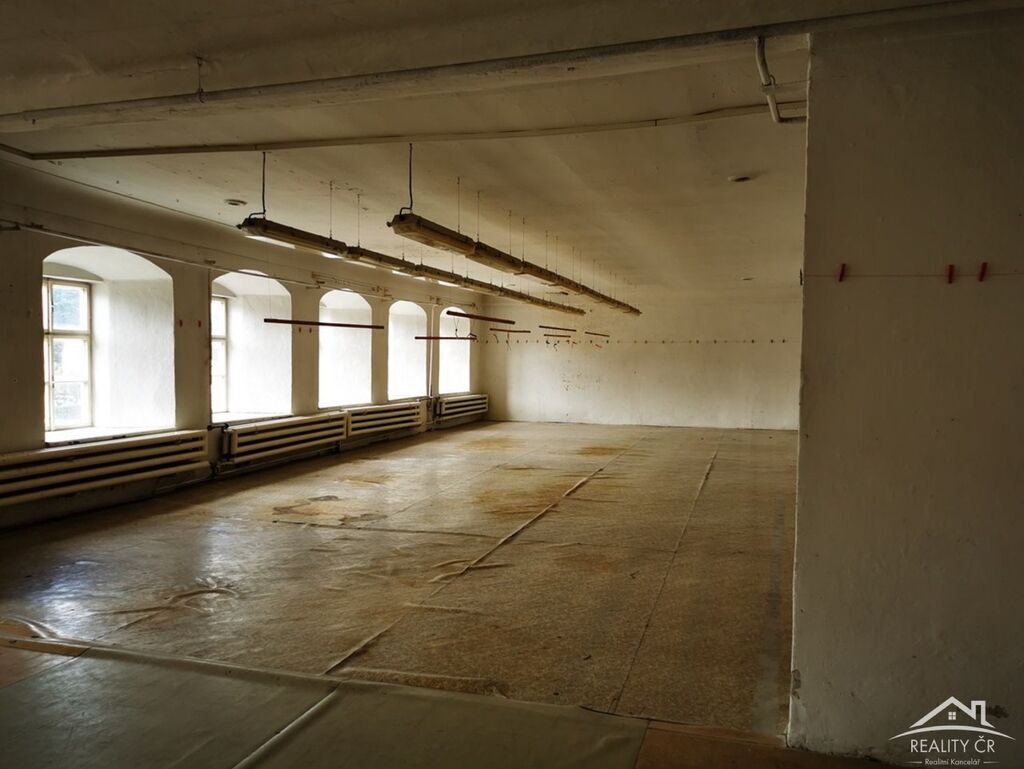 K dispozici je víceúčelovy objekt, situovany v samém centru města Brtnice, dojezd 10km do Jihlavy do Dukovan 55 km, původně provozovna výrobny kožešiny a obuvi, včetně internátu, využití možné jako výrobní, dílenské a skladovací prostory, cca 2000 m2, vystaveno i 8 pokojů s přísl. v podkroví, výtah, v suterénu fungující pizzerie a klub, částečně pronajato jako sklad, dvůr 1000 m2, drobné stavební úpravy nutné. Přízemí 439m2 včetně garáže a kotelny II. nadzemní podlaží 627m2, podkroví 1150m2. Parkování a technická obslužnost je na vlastním pozemku na dvoře nebo na náměstí před domem. Elektro je 380V v celém objektu. V domě je nákladní výtah do II. NP, který je plně funkční, musela by se udělat jeho revize. Sociální zařízení je mimo provoz. Stav objektu je původní, objekt do dvora byl postaven v roce 1972 a vestavba 8 pokojů v podkroví byla provedena cca v roce 1986. Objekt je částečně pronajímán. Více informací na telefonu.