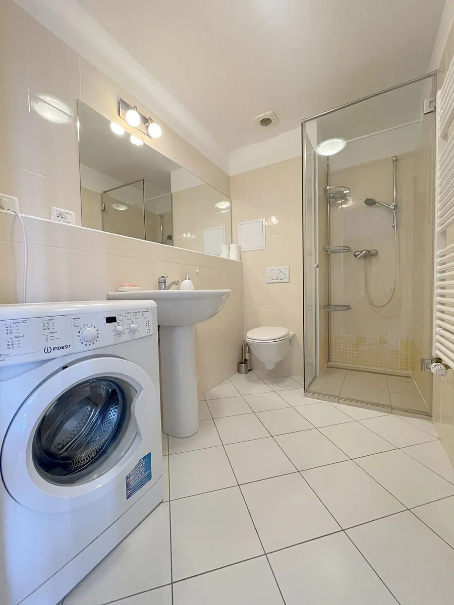 Byt se nachází ve 3. patře s výtahem, je nezařízený (nábytek viz foto může být ponechán), jeho součástí je kuchyňská linka, el. sporák, digestoř, myčka nádobí, (lednice s mrazákem může být dodána), pračka. Koupelna se sprchovým koutem je společně s WC. Na podlaze jsou plovoucí podlahy a dlažba. Možnost kabelové TV a připojení k internetu/telefonu od Vodafone nebo O2.