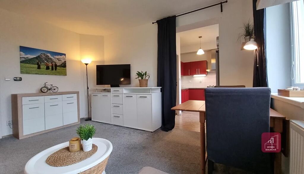 Majitel byt pronajímá vybavený myčka, lednička, mrazák, pračka a sušička. Dále zůstává veškeré vybavení bytu.