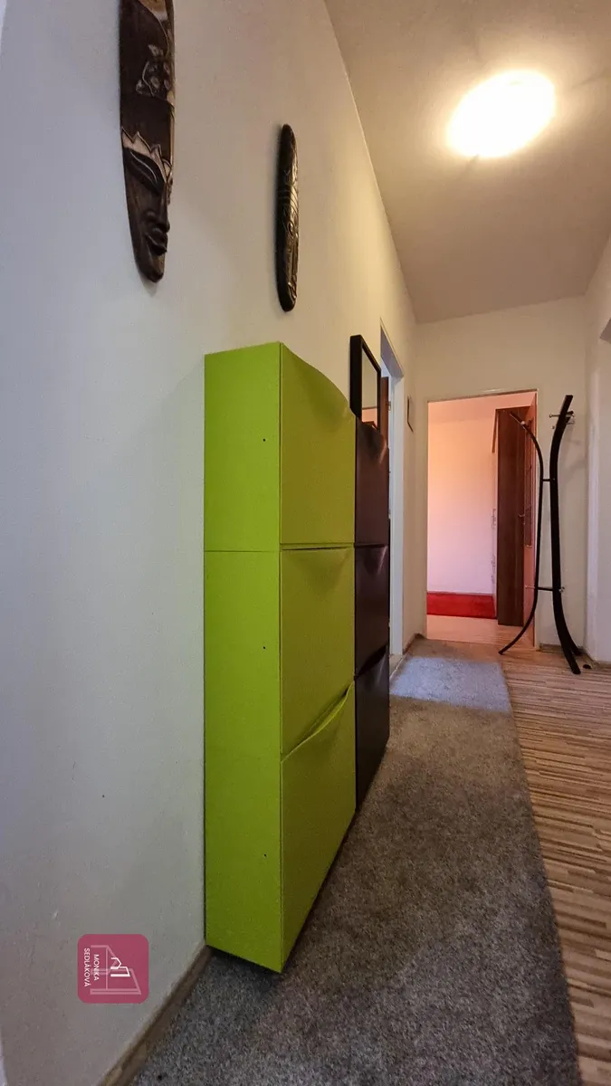 Po vstupu do bytu vás přivítá chodba, ze které se pohodlně dostanete do všech místností obývacího pokoje s průchodem do kuchyňského koutu a ložnice se vstupem na lodžii s jižní orientací. K dispozici je dále samostatná koupelna, oddělené WC a komora. Díky neprůchozím pokojům byt působí velmi prakticky a vzdušně.