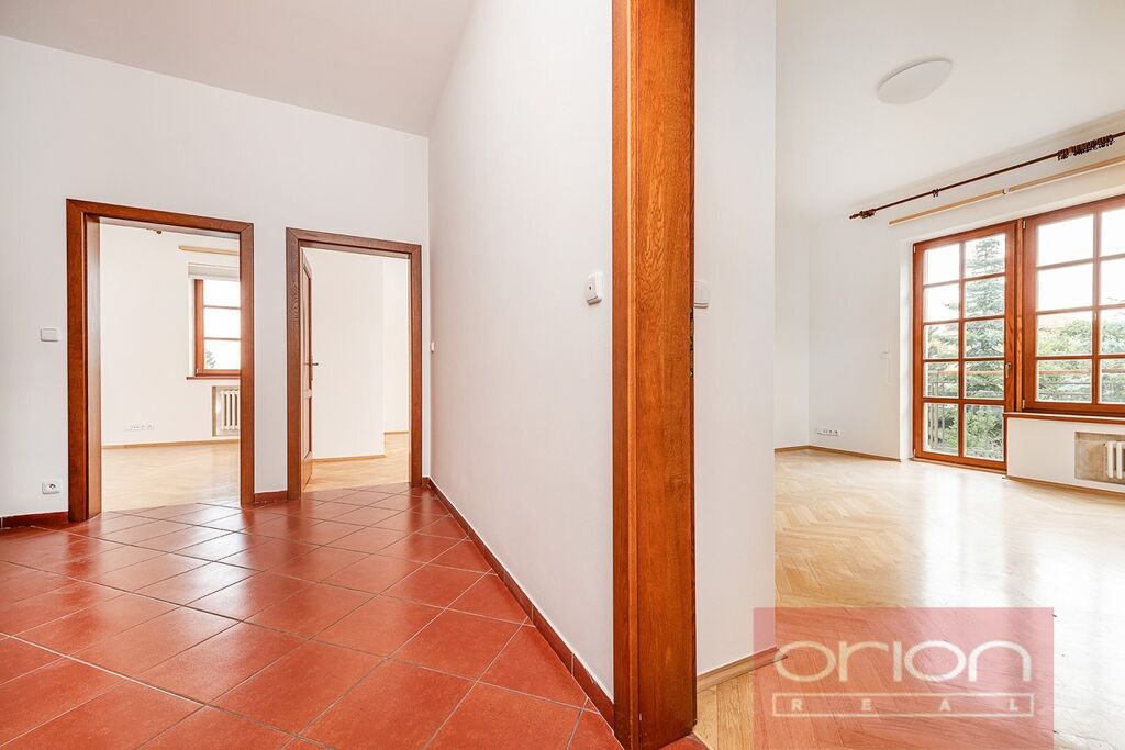 Nabízíme k pronájmu prostornou vilu se zahradou v klidné rezidenční čtvrti v Praze 6 - Břevnov. Celková plocha domu činí 316 m² a nabízí v přízemí vstupní halu, plně vybavenou kuchyň, obývací pokoj s jídelnou a se vstupem na terasu a zahradu, koupelnu se sprchou a samostatnou toaletu. V 1. patře jsou 3 ložnice, (z nichž 2 mají vstup na balkon), koupelna s rohovou vanou a sprchou a samostatná toaleta. Podkroví nabízí 2 ložnice a koupelnu s vanou a toaletou. V suterénu domu se nachází skladovací prostory, koupelna se sprchou, umyvadlem a WC, technická místnost a garáž pro dvě auta. K vybavení domu patří skříně, pračka, internet, satelit a alarm. Na podlahách jsou dřevěné parkety a dlažba. Ve spodním patře jsou venkovní elektrické rolety. K dispozici je udržovaná zahrada o velikosti 403 m². Dům je situován v klidné lokalitě v pěší dostupnosti od parku Ladronka, obory Hvězda nebo Břevnovského kláštera. Krásná lokalita se spoustou zeleně v okolí, 5 minut chůze od tramvajové zastávky s rychlým spojením na metro Hradčanská. V blízkém okolí veškerá občanská vybavenost: obchody, školy a školky, mezinárodní školy, sportoviště, restaurace a kavárny. Autem blízké napojení na městský okruh a dálniční síť.