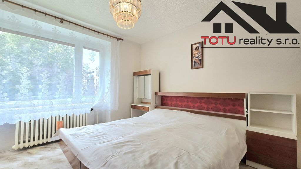 Dispozice bytu: vstupní chodba 11 m2 navazující na kuchyň 9 m2 a velkorysý obývací pokoj 21 m2, ze které je vstup do lodžie 6 m2. Ze vstupní chodby dále pak neprůchozí ložnice 13 m2 a neprůchozí dětský pokoj 9,5 m2. Koupelna s vanou, samostatná toaleta a větší úložná komora 4 m2. K bytu dále patří dvě zděné sklepní kóje.