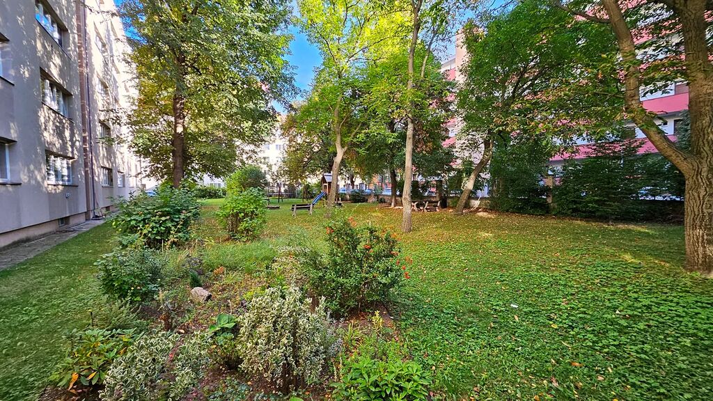 Byt včetně podílu na pozemcích pod domem a zahrady (zahrada o výměře 990 m2 ve spoluvlastnictví členů SVJ je oplocená, vstup na klíč, používaná pouze pro vlastníky bytů jako zahrada – herní prvky pro děti, venkovní sezení), dobře fungující SVJ, slušný dům.