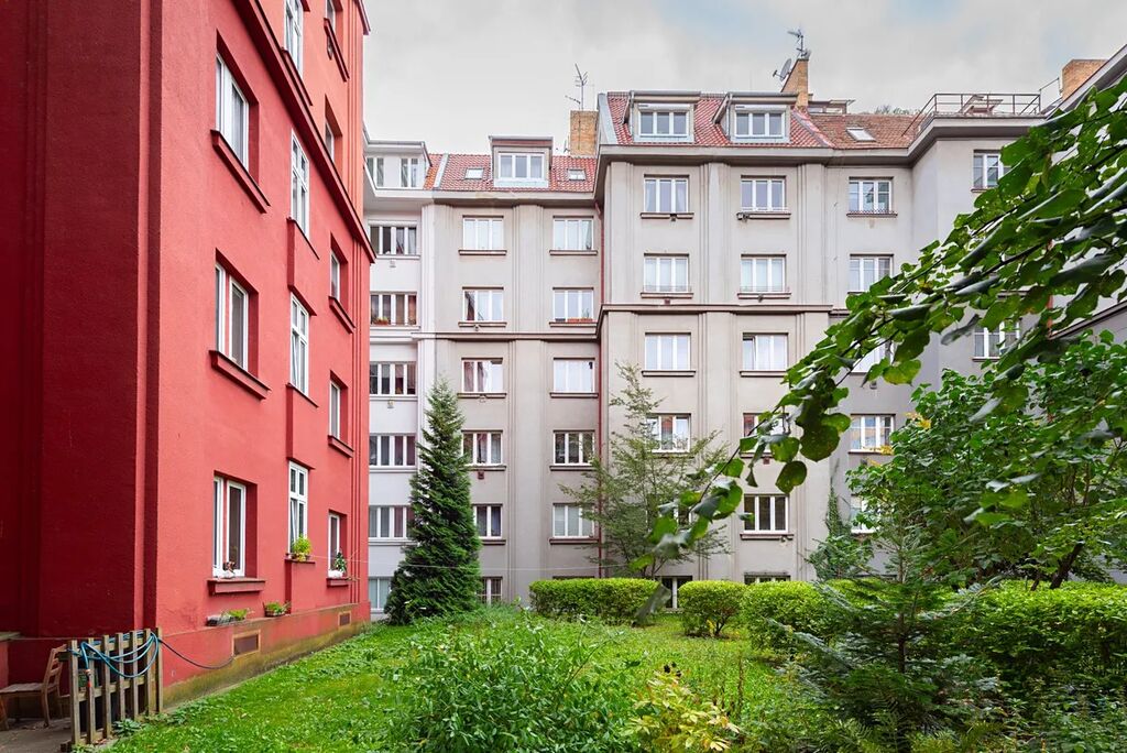 K dispozici je také společná zahrada ve vnitrobloku domu – klidné místo se stromy, ideální pro odpočinek či grilování.