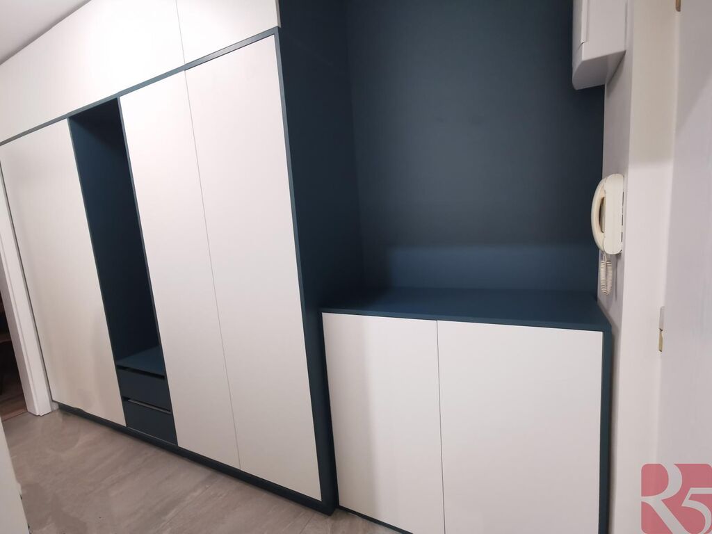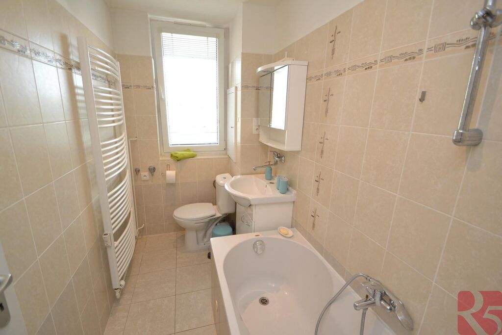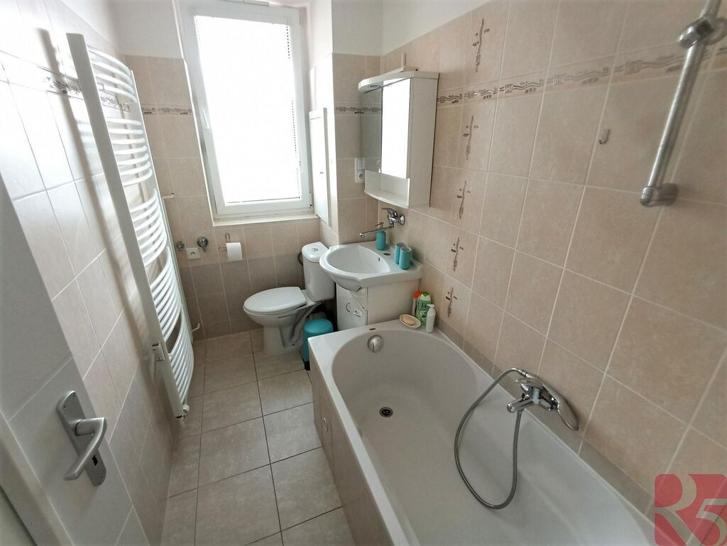 Prostorná vstupní chodba s vestavěnou šatní skříní, zde vstup do koupelny s vanou a toaletou, dále samostatné kuchyně s novou kuchyňskou linkou IKEA s vestavěnou el. Troubou a indukční varnou deskou. Volně stojící lednice s mrazákem, potravinová skříň a další úložné prostory.