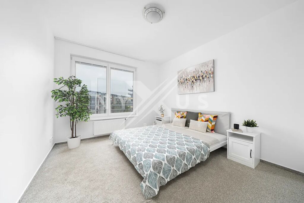 Byt se nachází ve 3. patře domu a jeho dispozice je navržena s ohledem na komfortní bydlení. Z chodby je vstup do komory, koupelny s vanou a toaletou, ložnice a do prostorného obývacího pokoje s kuchyňským koutem, odkud je vstup na slunnou lodžii. Velkou výhodou je sklep umístěný hned na patře vedle bytu, což zajišťuje pohodlný přístup k úložnému prostoru. Součástí bytu je také garážové stání, které je z obou stran chráněno zdí, a poskytuje tak soukromí a bezpečí.