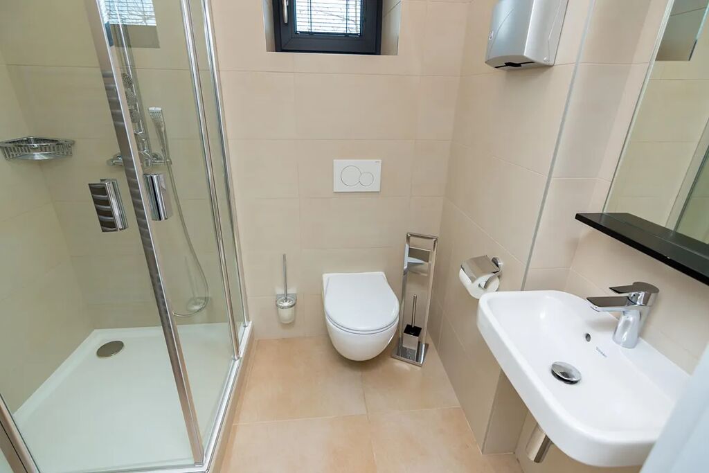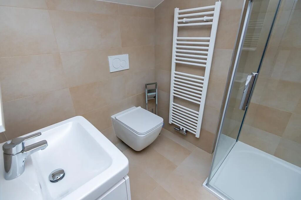 Klimatizace, moderní sanita a kvalitní vinylové podlahy v dekoru dub