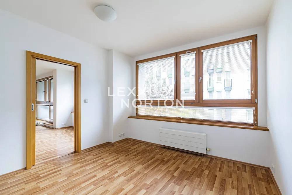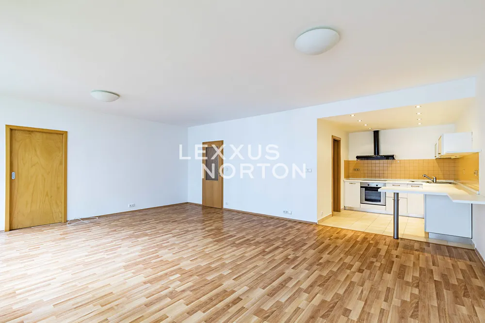 Tento světlý nezařízený byt 2+kk k pronájmu dispozičně nabízí vstupní chodbu, prostorný obývací pokoj se vstupem na balkon, plně vybaveným kuchyňským koutem (sporák, trouba, lednice, mrazák a myčka nádobí) včetně jídelního prostoru, ložnici, koupelnu disponující vanou a sprchovým koutem a komoru. K bytu náleží balkon orientovaný do klidného vnitrobloku. Součástí nájemného je sklep. Dvě parkovací stání za příplatek 1.500 Kč