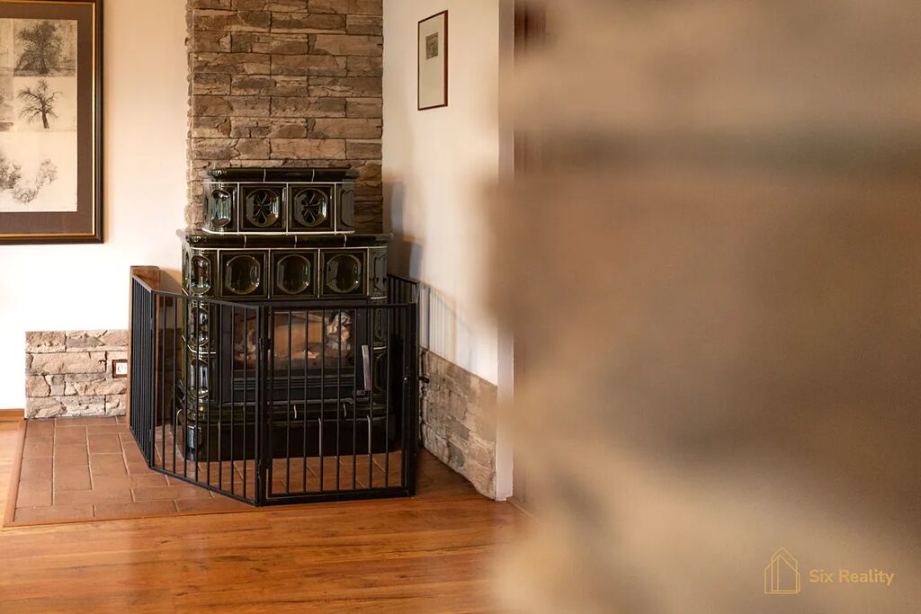 Vytápění je řešeno krbovými kamny s výměníkem.