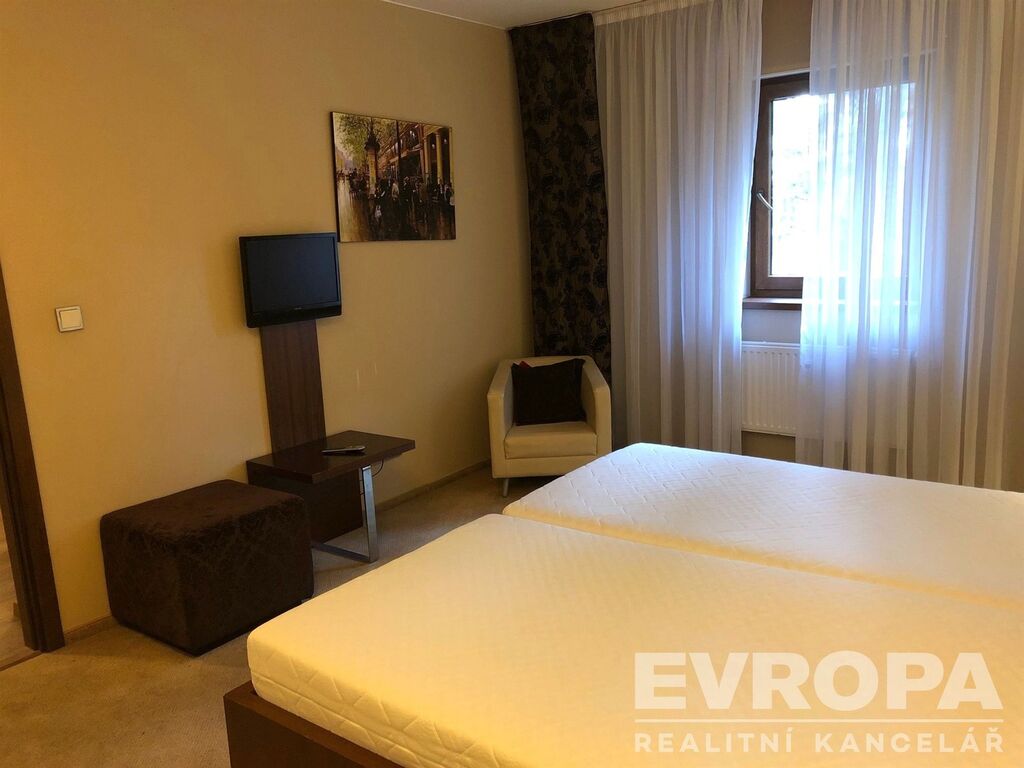 Kompletně zařízený byt, velkorysé zázemí (recepce, restaurace, wellness) v prestižní lokalitě u Borského parku, v srdci sportovního areálu s výbornou dostupností do centra města a na dálnici D5, v dosahu MHD a veškerá občanská vybavenost.