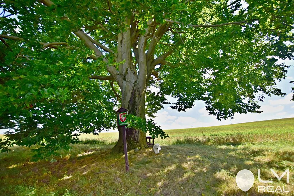 Dům má zastavěnou plochu 210 m2 a stojí na pozemku 720 m2, z toho zahrada před domem a za domem má plochu 510 m2. S domem také koupíte pozemek o výměře 23 m2 a podíl ID 1/16 z celkové výměry pozemku 500m2 (cesta k domu a za domem), a podíl ID1/4 pozemku z celkové výměry 2513 m2, kde je studna s vodovodem a památným dubem.