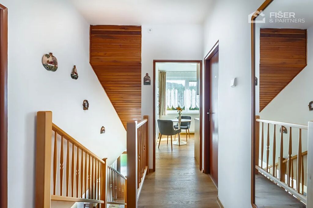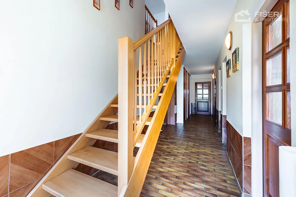 V přízemí domu je k dispozici garáž, prostorná spíž, technická místnost, toaleta a samostatný pokoj vhodný například jako pracovna či pokoj pro hosty. První patro nabízí komfortní rodinné zázemí dvě samostatné ložnice, obývací pokoj, koupelnu, samostatné WC a kuchyni s dostatkem prostoru pro jídelní kout. Z přední strany domu se nachází velký slunný balkon, který poskytuje příjemné místo k odpočinku.