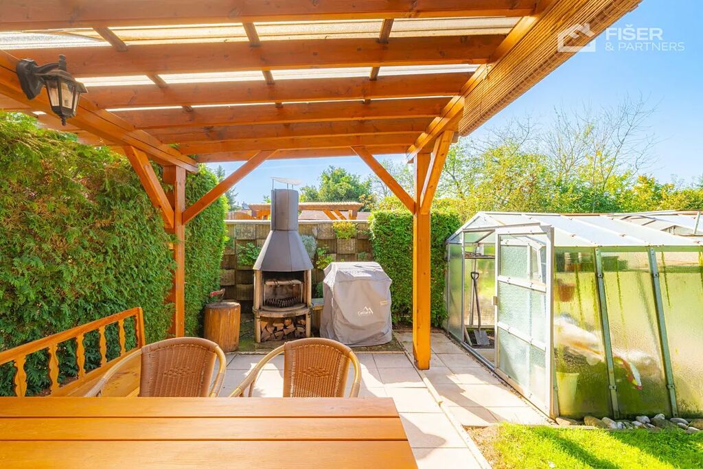 Součástí pozemku je udržovaná zahrada vybavená pergolou, skleníkem a zahradním domkem, což vytváří ideální prostředí pro relaxaci i zahrádkářské aktivity. Dům je napojen na místní kanalizaci, zdroj vody je obecní vodovod. Vytápění zajišťují krbová kamna a nový plynový kotel, což přináší komfort i úsporu provozních nákladů. Bojler je aktuálně napojen na elektřinu, ale je možné jej připojit i na plyn. Dům se nachází v klidné lokalitě s výbornou dostupností, v těsné blízkosti jsou mateřská škola, základní škola i obchody, což zajišťuje pohodlné rodinné bydlení.