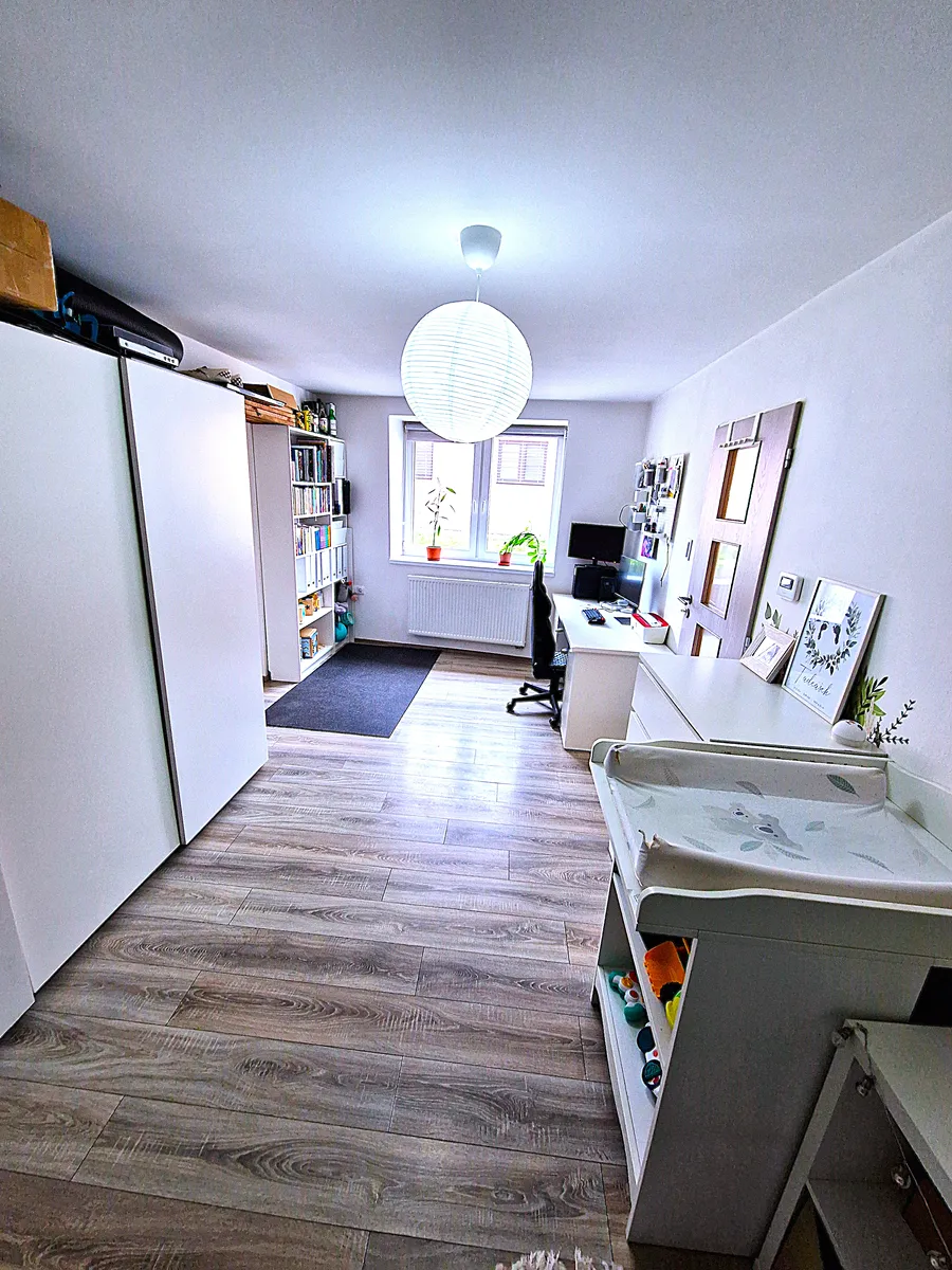 Jsou zde nové podlahy (dlažba, vinyl) snížené stropy a stěny SDK, dům je osazen plastovými okny.