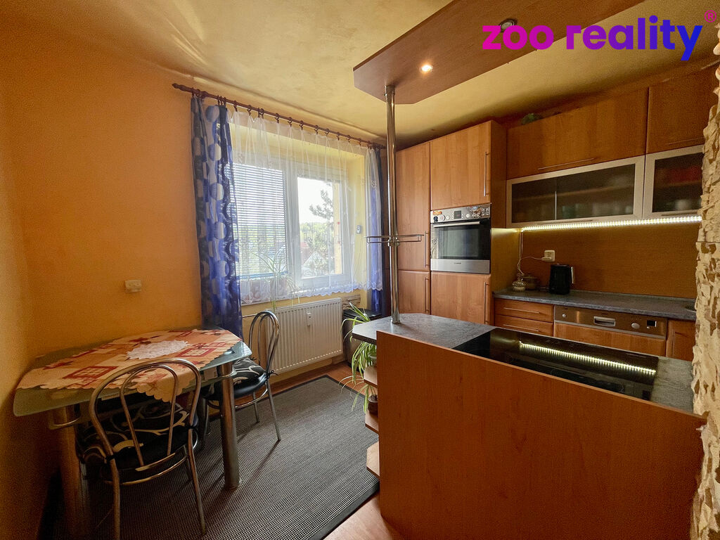 Do bytové jednotky vstoupíte přes vstupní menší chodbu s šatnou, která Vás zavede do kuchyně, která je vybavena kuchyňskou linkou na míru s ostrůvkem a moderními spotřebiči, včetně myčky. Jídelní stůl je součástí kuchyňského prostoru. Dále se v bytě nachází prostorný obývací pokoj a dva další pokoje, které jsou průchozí přes obývací pokoj, což zajišťuje dostatek přirozeného světla a vzdušnost interiéru. Koupelna je vybavena sprchovým koutem, což přispívá k maximálnímu komfortu bydlení. Koupelna vyžaduje pokládku nové podlahové krytiny, nyní je částečně položená dlažba a usazení stávajícího sprchového koutu. WC je samostatné u vstupní chodby.