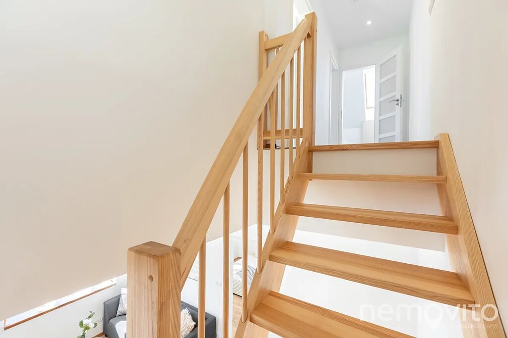 Podlaží jsou propojena masivním dřevěným schodištěm, v bytě je k dispozici podlahové vytápění se samostatným kotlem a okna jsou ve trojskle. Parkování aut je zajištěno na vlastním pozemku se spoluvlastnickým podílem, kde je rovněž malá sdílená zahrádka. Po rekonstrukci je také celý dům, který stejně jako byt nevyžaduje žádné investice.