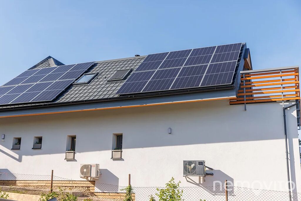Dvoupodlažní stavba s obrovským obývákem (110 m2) nabízí skoro 300 m2 plochy s garáží, velkou půdou, malým sklípkem u bazénu a 4 koupelnami. Nechybí také řada úložných prostor v podobě technické místnosti nebo velké prádelny. Typická velkorysost domů z přelomu milénia, která však netrpí vysokými náklady na provoz. Dům je totiž zejména v letních měsících dle výpočtů PENB na hraně soběstačnosti (teoretická spotřeba 1 kWh na 1 m2 za rok).