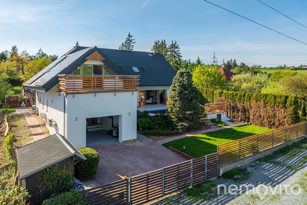 Dům na kraji zástavby s fantastickým výhledem je kolaudovaný v roce 2001. V letech 2024 - 2025 prošel naprosto zásadní rekonstrukcí exteriéru. Nová fasáda se zateplením, nová střecha včetně izolace, trojskla, tepelná čerpadla vzduch-vzduch a FVE o výkonu 10 kWp s baterií 11 kWh. Nově byl upraven také pozemek, který můžete zvolit ve dvou velikostech - 730 a 1.269 m2. Interiér je převážně původní (s výjimkou štuků a koupelen) a je určen k dokončení dle představ a požadavků nového majitele.
