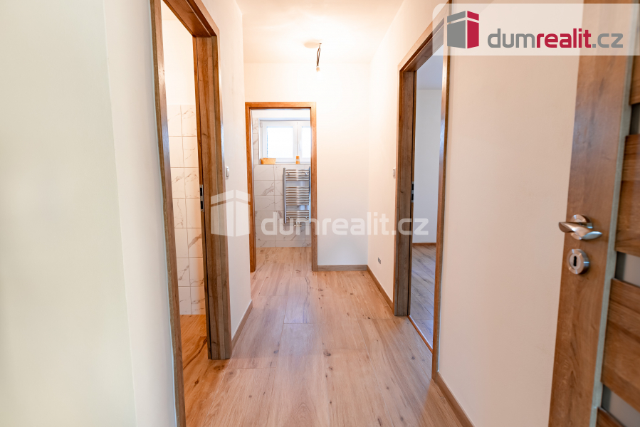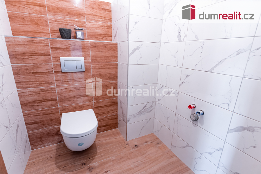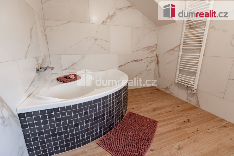 Ve 2. patře se nachází tři neprůchozí pokoje, wc, koupelna s vanou a vstup na půdu, kde je úložný prostor a revizní výlez ke komínu.