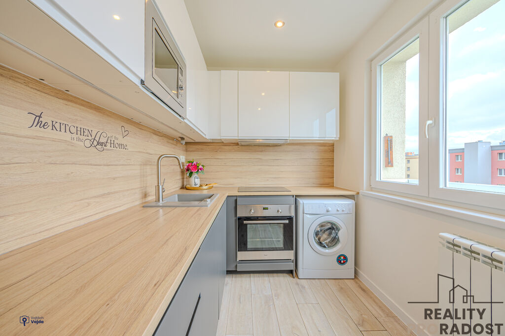Lokalita je perfektní, hned vedle zimního stadionu v Ostravě - Porubě, poblíž Vozovny. Pokud máte zájem o kvalitní bydlení v krásně zrekonstruovaném bytě, tak je tato nabídka pro Vás jako stvořená. Tento čistý a částečně zařízený byt se nachází ve 3.patře a čeká na Vás vybavená kuchyň, jejíž součástí kuchyňská linka, myčka, lednice s mrazákem, indukční deska s digestoří, horkovzdušná trouba, mikrovlnná trouba a také pračka. V obývacím pokoji je sedací souprava s konferenčním stolem, TV stolkem a skříňkou/ knihovnou.
