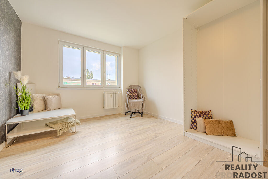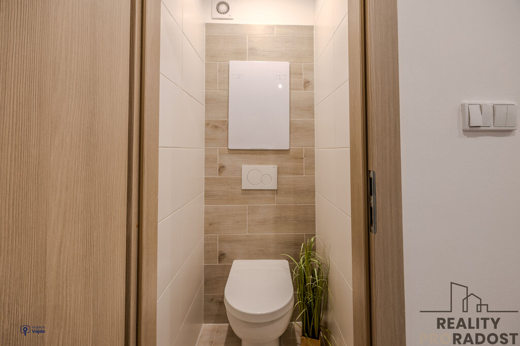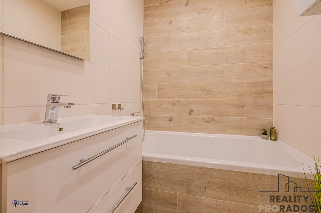 V ložnici jsou dvě velké skříně. V předsíni je na míru zhotovená prostorná vestavná skříň. Koupelna je s vanou a umyvadlovou skříňkou, toaleta je samostatná.