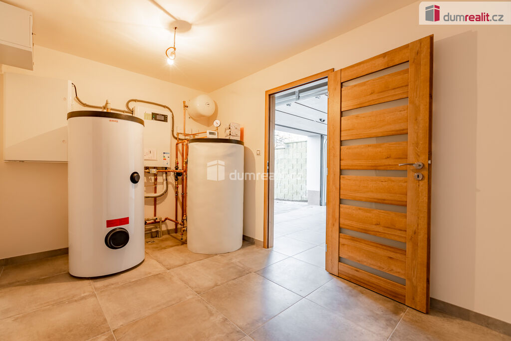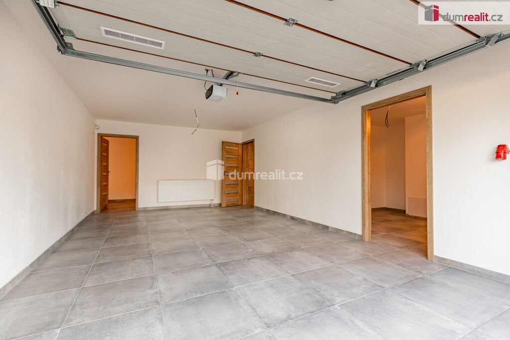 Elektricky ovládaná jsou vrata na pozemku, i u garáže. Kromě garáže je možné parkovat ještě na pozemku, kam se vejdou 2 auta.