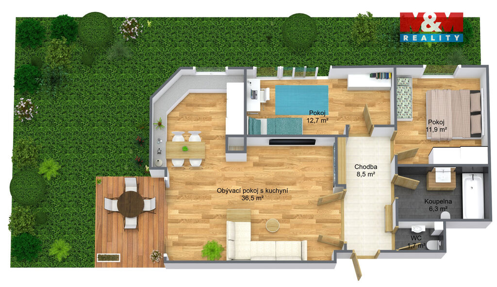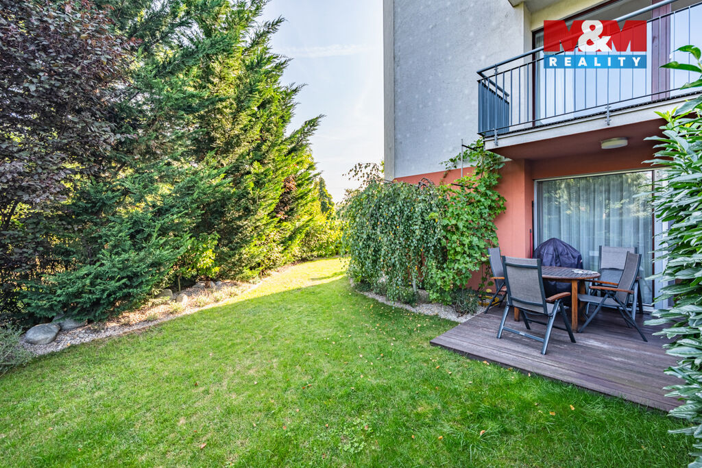 Nabízíme k prodeji světlý byt 3+kk o rozloze 80 m² s vlastní zahradou na ploše 160 m². Nemovitost se nachází v moderním a uzavřeném rezidenčním objektu Kejřův Park, který disponuje recepcí a ostrahou 24 hodin denně. Dispozice bytu zahrnuje vstupní chodbu, obývací pokoj s kuchyňským koutem, jídelnu, ložnici, dětský pokoj, koupelnu s vanou a samostatnou toaletu. K bytu náleží venkovní parkovací stání, terasa z tropického dřeva Massaranduba a upravená zahrada se vstupem ze všech pokojů se vzrostlou zelení pro maximální soukromí. Bytový dům disponuje sdílenou fotovoltaickou elektrárnou. V areálu naleznete dvě dětské hřiště, volejbalové a workout hřiště, pingpongové stoly a kino sál. V bezprostřední blízkosti se nacházejí nově zrevitalizovaný Hořejší rybník a značené trasy pro pěší turistiku, cyklostezky, trasy pro in-line bruslaře i stezky vhodné pro kočárky. V případě zájmu o prohlídku nebo dalších dotazů nás neváhejte kontaktovat.