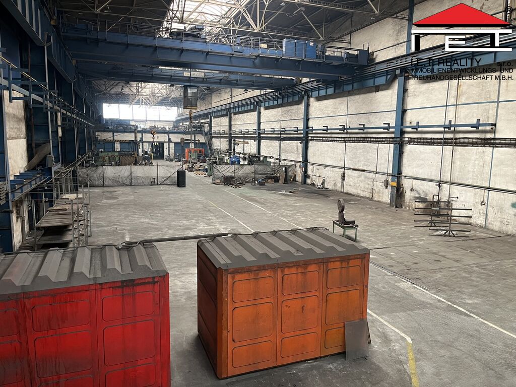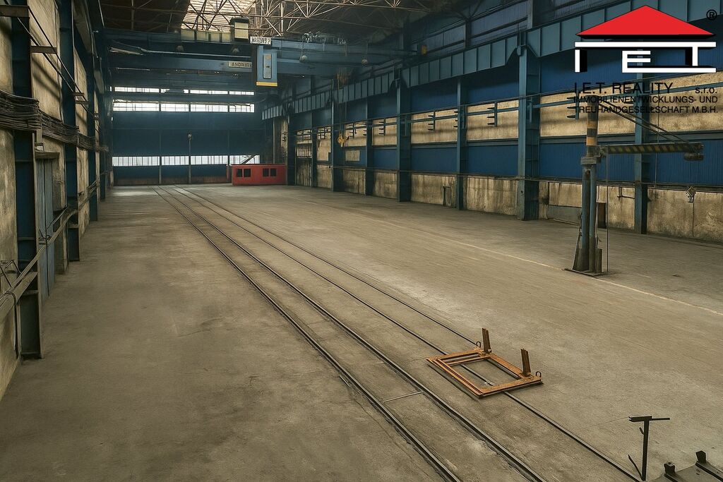 K pronájmu nabízíme výrobní/skladovou halu o ploše 1 992 m² s vlastními vraty 5 × 5 m, dvěma mostovými jeřáby (12,5 t a 5 t) a třemi sloupovými jeřáby. Hala má nosnost podlahy 7 000 kg/m², výšku jeřábů 11 m a je možné ji vytápět.