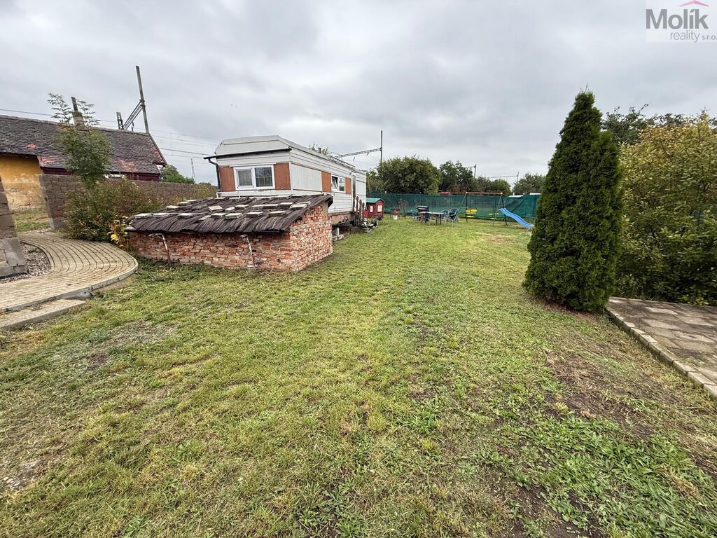 Součástí pozemku je menší nádražní domek, vhodný k rekonstrukci či jako zázemí, a také obyvatelná maringotka, kterou je možné využívat ihned k rekreaci nebo jako dočasné bydlení během stavby.