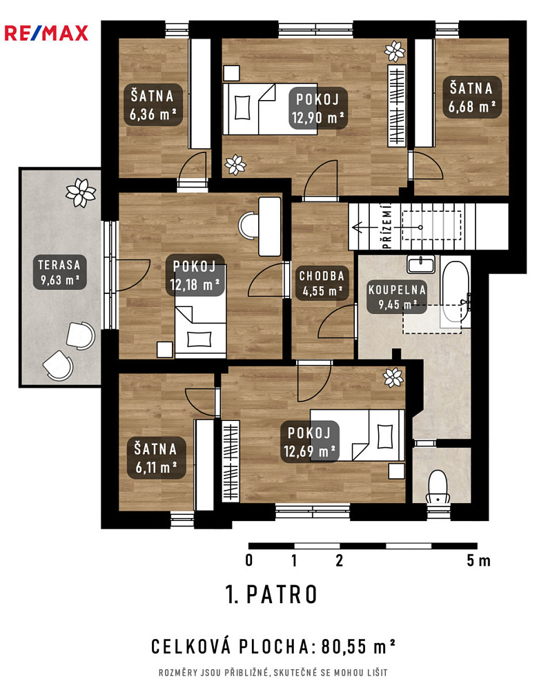 Dům má za sebou důležité rekonstrukce exteriéru – novou střechu, zateplenou fasádu i zrekonstruovaný balkon a vstup. Díky tomu působí upraveně a majitelé se částečně zaměřili i na interiér: ve většině místností jsou nové podlahy a v přízemí byla modernizována kuchyně. Dům je navíc celý podsklepen, což přináší spoustu praktického úložného prostoru.