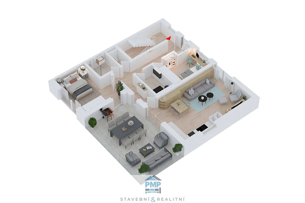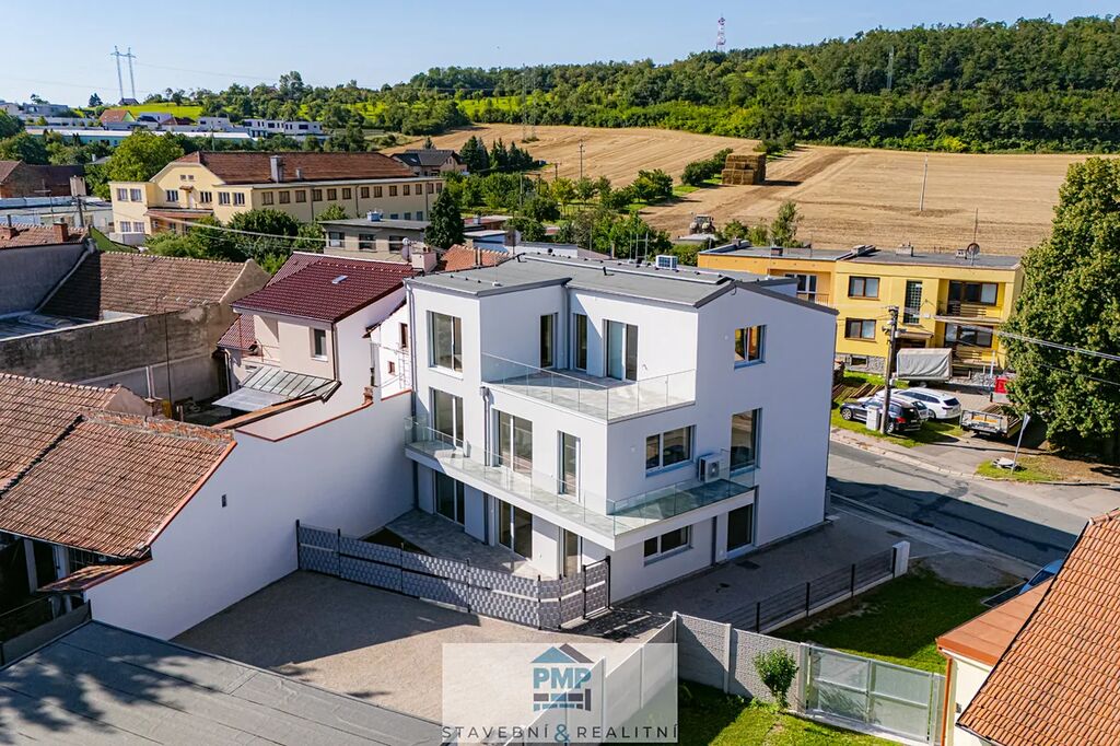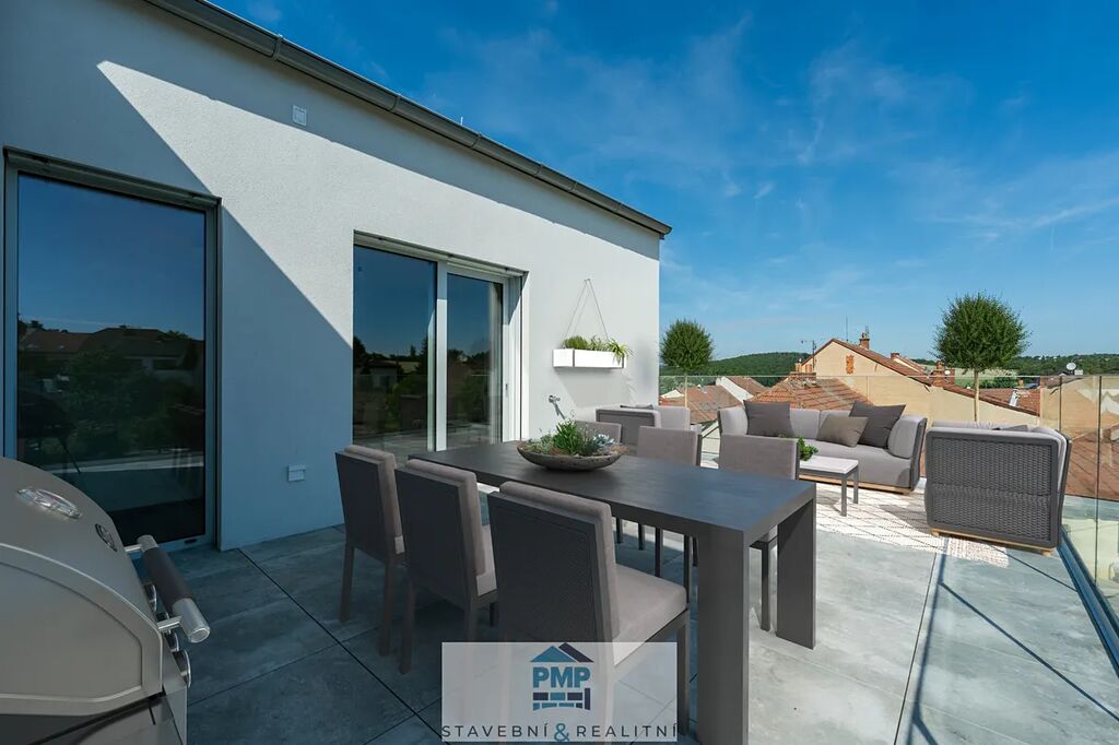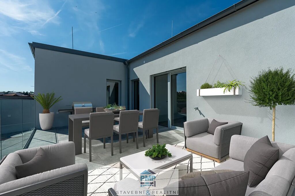 Byt se nachází v podkroví novostavby rodinného domu, která zahrnuje pouze tři bytové jednotky – každou na samostatném podlaží. Díky tomu si můžete užívat soukromí a klid, jaký běžné bytové domy nenabízejí. Hlavní dominantou této jednotky je prostorná terasa o velikosti 25,4 m², ideální pro posezení s rodinou a přáteli, relaxaci u kávy nebo večerní sklenku vína s krásným výhledem do okolní přírody.