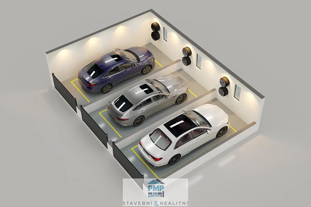 Součástí bytu je rovněž garáž s nadstandardní hloubkou 7 metrů, kam pohodlně zaparkujete i větší vůz nebo motocykl. K bytu náleží i vlastní venkovní parkovací stání.