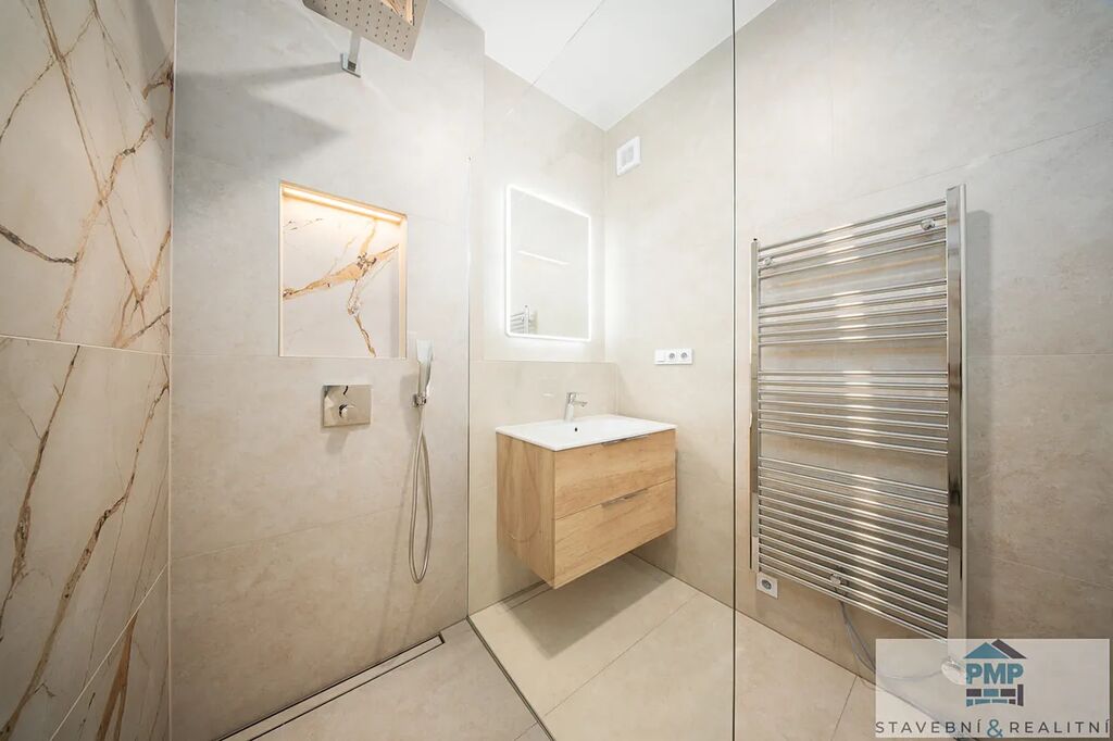 Byt je vybaven klimatizačním systémem Dražice v každé obytné místnosti, takže Vám zajistí příjemnou teplotu po celý rok. O tepelný komfort se stará podlahové teplovodní vytápění napojené na centrální tepelné čerpadlo NIBE vzduch–voda. Kvalitu interiéru podtrhují dubové lepené podlahy, hliníková okna s trojsklem a předokenní žaluzie na elektrický pohon. Samozřejmostí je centrální vysavač pro snadný úklid, příprava na fotovoltaickou elektrárnu a využívání dešťové vody, garáž s přípojkou na wallbox pro elektromobil a také příprava na optický internet. Tento byt tak představuje dokonalou kombinaci komfortu, elegance a moderních technologií.