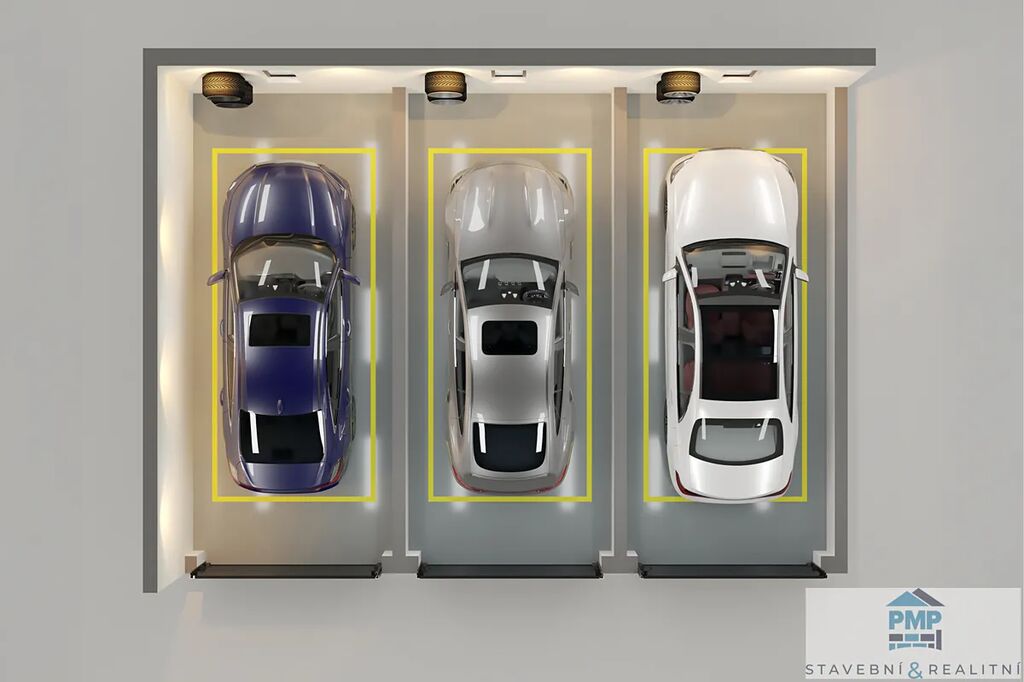 K bytu náleží také garáž s nadstandardní hloubkou 7 metrů a vlastní venkovní parkovací stání, což Vám poskytne komfortní a bezpečné parkování.