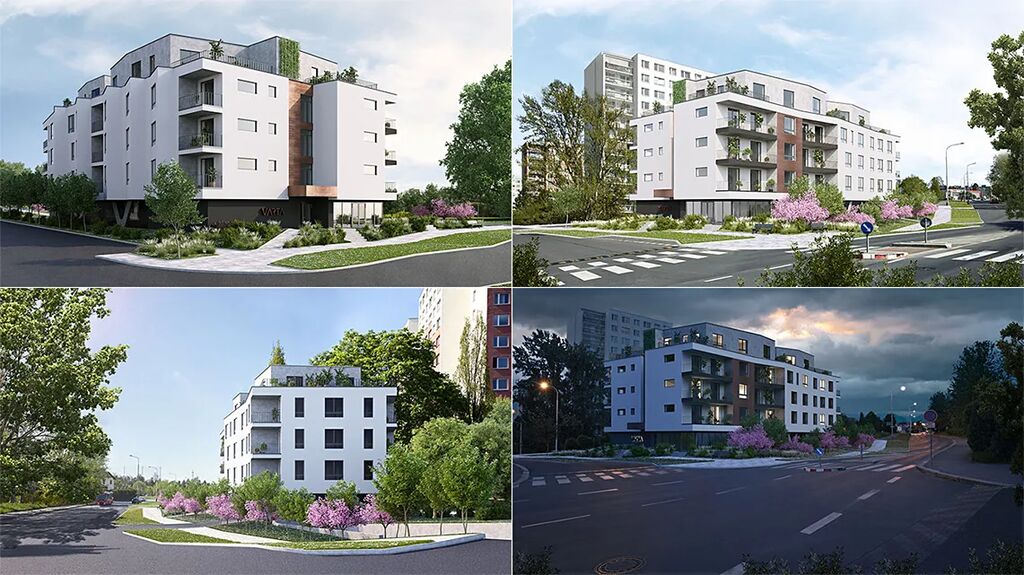Projekt nabízí celkem 37 bytových jednotek rozmístěných v pětipatrovém bytovém domě.