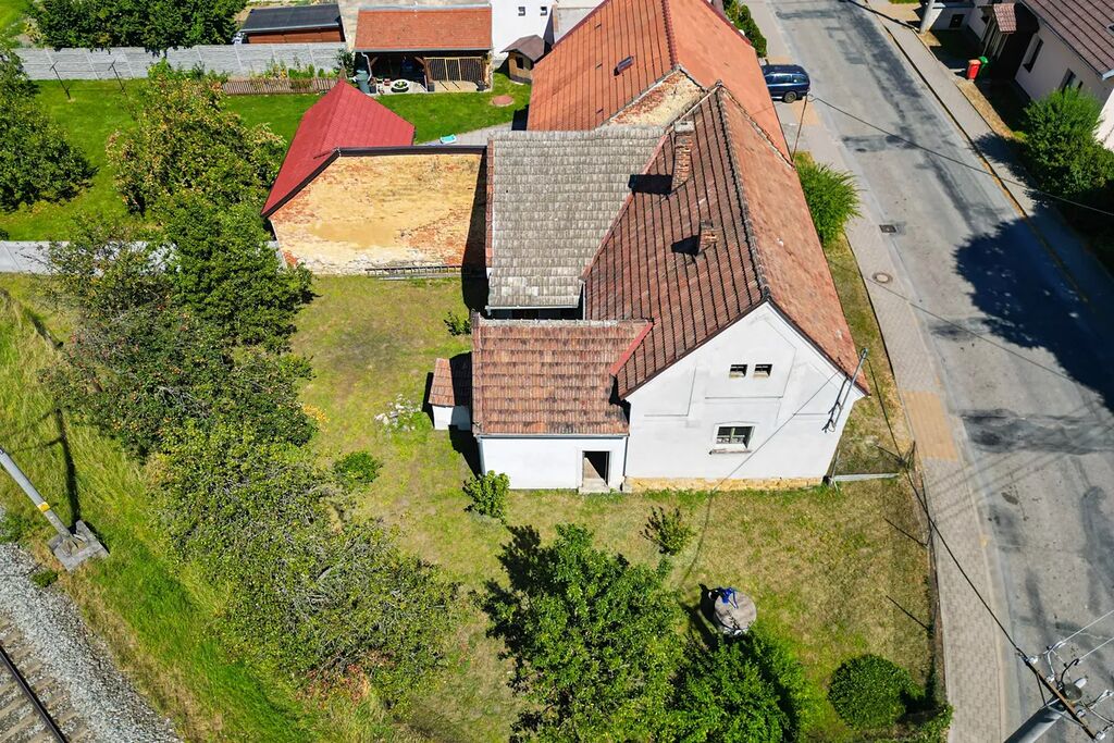 Přístup do domu zajišťuje prostorný vjezd, kde je možné parkovat, za domem se pak nachází dvůr (13,5 m²), zahrada s ovocnými stromy (višeň, hrušeň, jabloň, ryngle), studnou, suchým WC a přiléhající železniční tratí Brno - Česká Třebová. Díky tomu je lokalita velice dobře napojena na větší města, kam dorazíte veřejnou dopravou během pár minut.