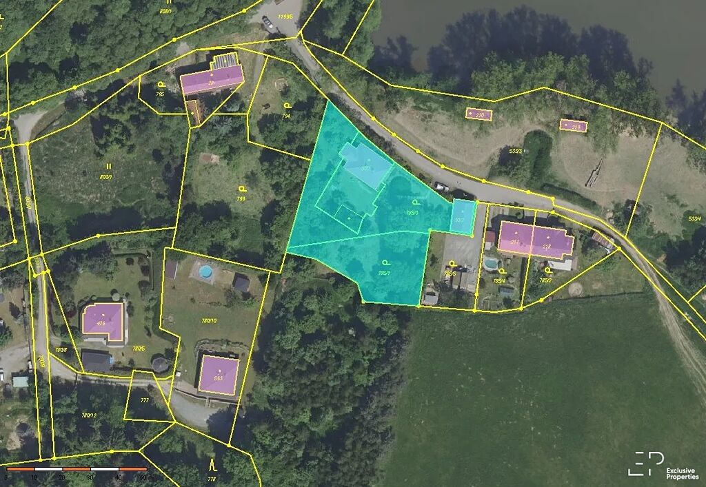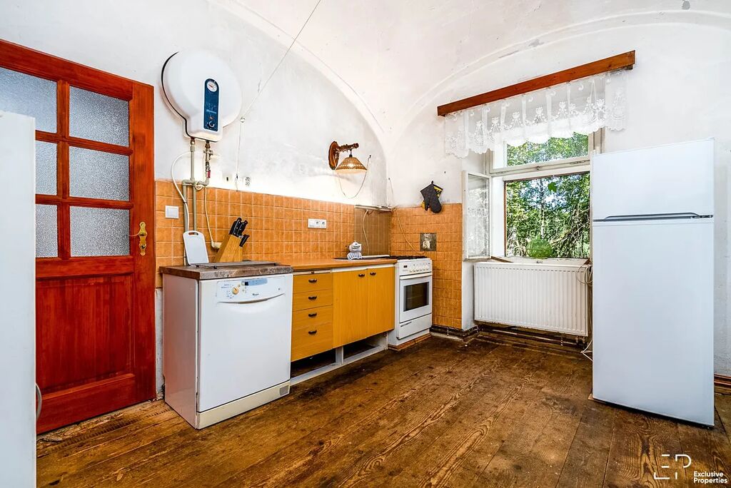 Na pozemku je ještě kůlna a stodola. Jsou to dva stavební pozemky 523 m² a 82 m² s velkou zahradou o výměře 1920 m².