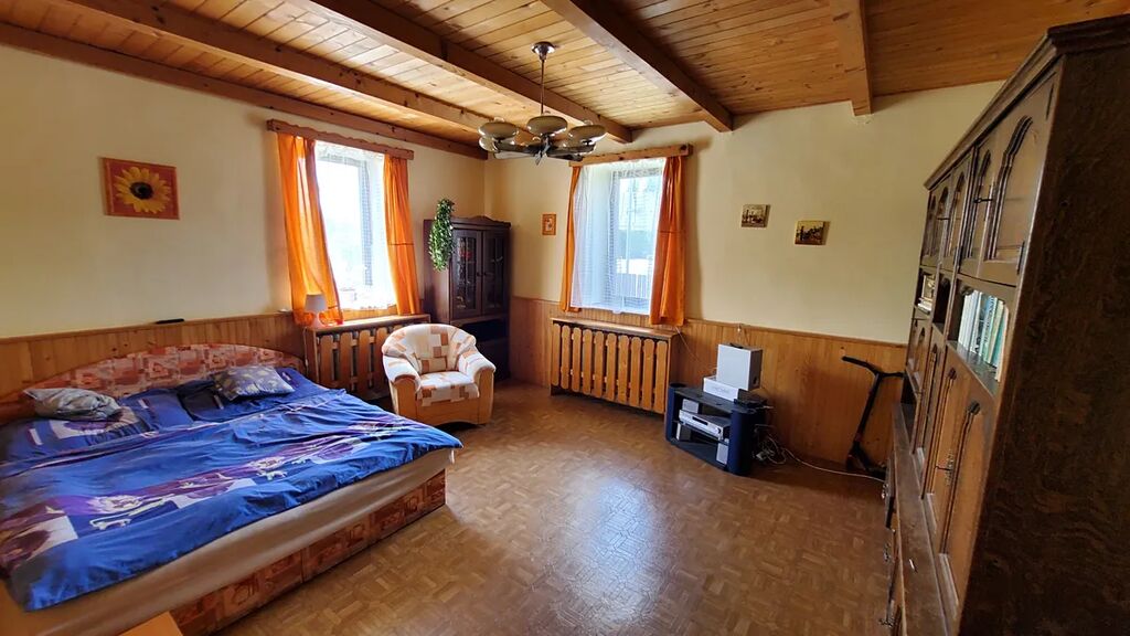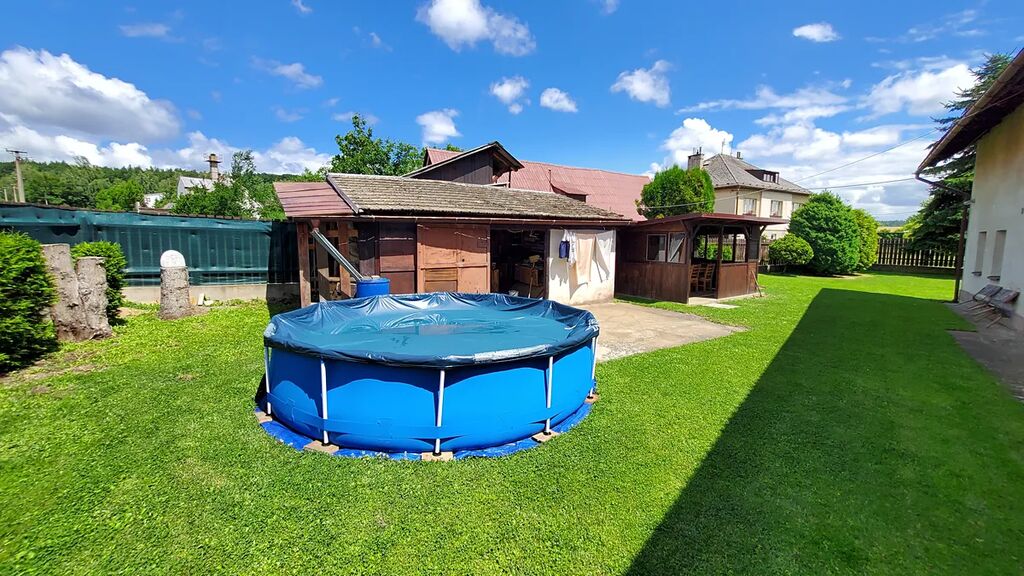 V přízemí domu jsou čtyři samostatné pokoje + velký obývací pokoj s kuchyňským koutem, dvě chodby, koupelna s vanou, samostatné WC a prostor bývalé kotelny (samostatná místnost). V podkroví je velký půdní prostor, přístupný po vnitřním schodišti. Pod domem jsou prostorné sklepy. Část přízemí je garáž – dílna. Na zahradě je pergola a další samostatný sklep. Dům je napojen na obecní vodovod, má plynovou přípojku, septik a elektřinu 230/400V. Topení je ústřední na centrální plynový kotel. Jedná se o zděnou stavbu v dobrém technickém stavu. Zahrada je okrasná a udržovaná. Část pozemku je oplocena, všechny pozemky jsou v rovině.