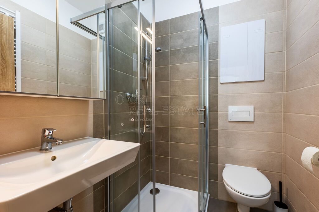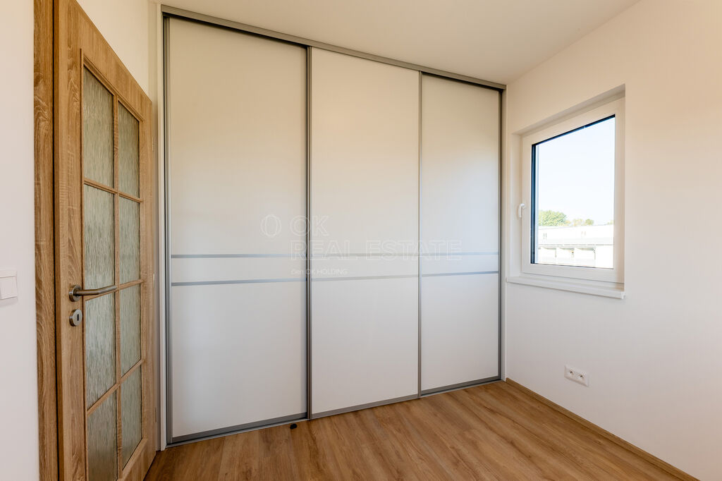 V bytě o podlahové ploše 36 m2 se nachází obývací pokoj s moderně zařízenou kuchyňskou linkou, obývací pokoj, ložnice s velkou vestavěnou skříní, koupelna se sprchovým koutem, WC a umyvadlem s galerií a předsíň. K bytu dále náleží balkón o ploše 4 m2 s krásným výhledem do přírody, sklep v 1. nadzemním podlaží a parkovací stání přímo u domu za příplatek 1.OOO Kč měsíčně.