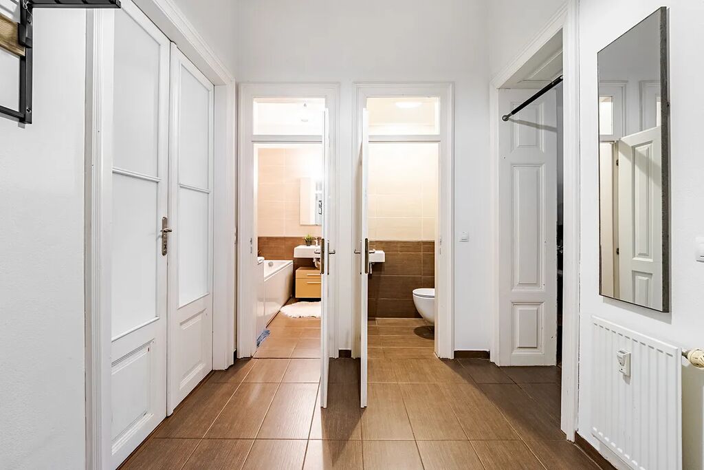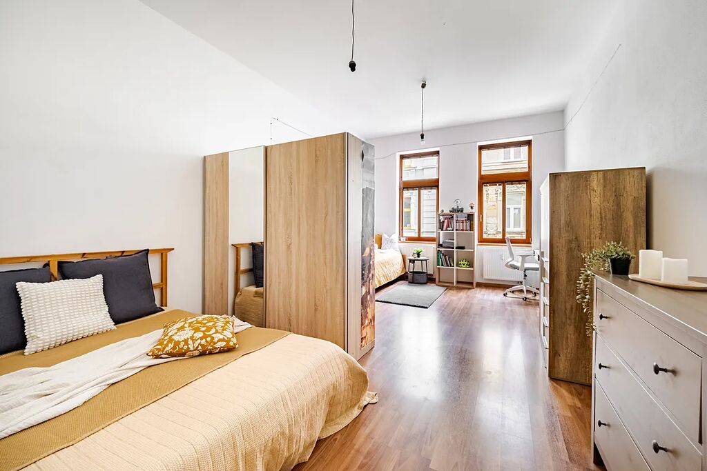 U jednoho z pokojů, jehož rozloha činí 26 m² se nabízí tuto místnost rozdělit a rázem Vám vznikne bytová jednotka o dispozici 4+kk.