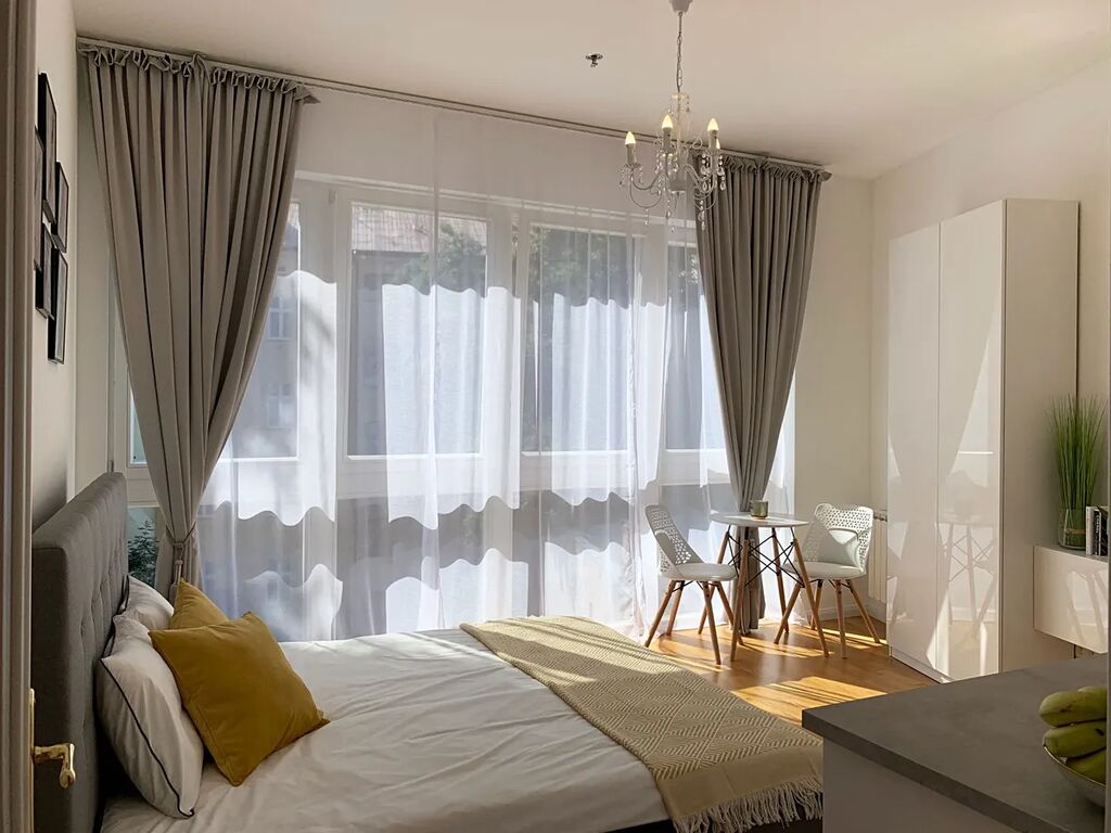 světlého bytu 1+kk ve 3. NP novorenesančního domu v pražských