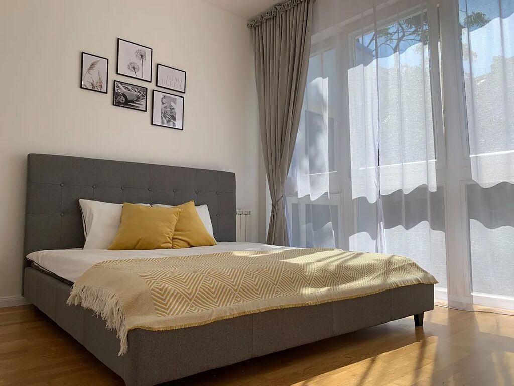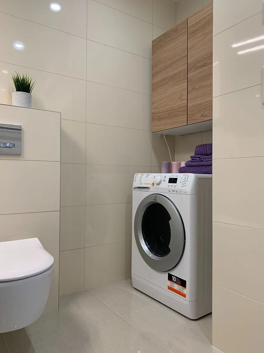 kout, k dispozici je také pračka se sušičkou. Okna v bytě jsou