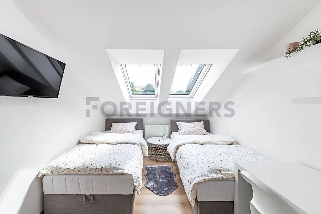 Nabízíme k prodeji prostorný a slunný podkrovní byt v osobním vlastnictví o dispozici 4+kk a celkové podlahové ploše 115,85 m² s krásnou terasou (17,2 m²), ze které je dechberoucí výhled na Medlánky a okolní přírodu. Byt se nachází ve 3. nadzemním podlaží domu z roku 2006 bez výtahu a je orientován na jihozápad a severovýchod, což zajišťuje dostatek přirozeného světla po celý den.