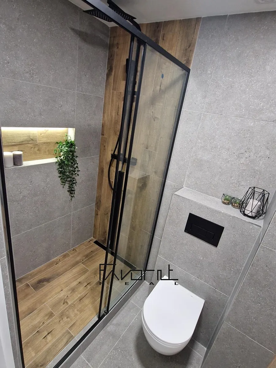 Nivelace podlah před položením plovoucí podlahy (srovnání). Na podlahách jsou zátěžové plovoucí podlahy. Nové interiérové a vstupní dveře včetně obložek, vypínače a zásuvky. Nové kvalitní omítky.
