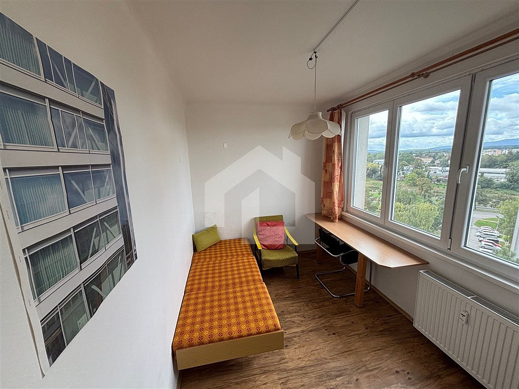 Byt se nachází v 9. patře panelového domu, je vybaven nábytkem a elektrickými spotřebiči (pračka, lednice, trouba) a nabízí 3 samostatné neprůchozí obytné pokoje, kuchyni s kuch. koutem a koupelnu a samostatné WC.