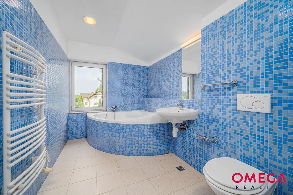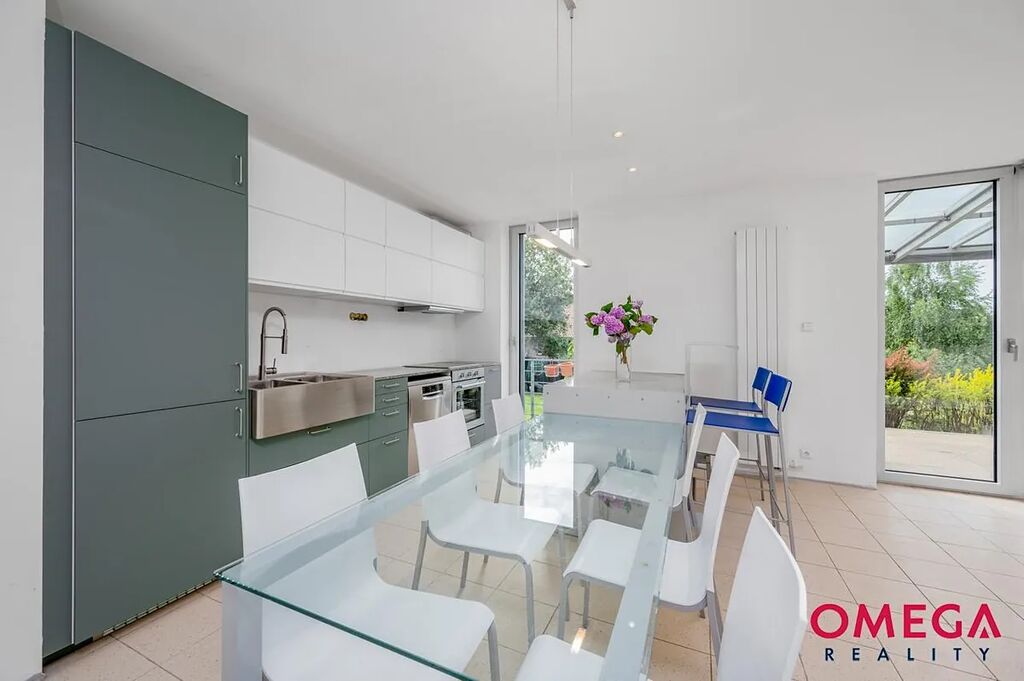 Exkluzivní nabídka pronájmu moderního RD o velikosti 4+kk o výměře cca 126 m2 se zahradou 875 m2 Dům bude připraven k nastěhování od 1.11.2025. Jednopatrový dům je postaven dle návrhu architektonického studia Schaufler a Roskovec. Skládá se z velkého obývacího prostoru (s krbem) s novým kuchyňským koutem, pracovny v přízemí a dvou ložnic v patře. V přízemí je dále malá koupelna se sprchovým koutem, komora + vestavěné skříně v chodbě. V prvním patře se nachází velká koupelna s rohovou vanou a technická místnost pro praní a žehlení. Vkusná nově pořízená kuchyňská linka je vybavena vestavěnými spotřebiči (sporák se sklokeramickou deskou Miele, ledničkou s mrazákem a myčkou). V obývacím pokoji je krb. Dvě terasy se vstupem z obývacího pokoje. Stání pro 4 vozy. Nemovitost je nově napojena na kanalizační řád. Služby zahradníka jsou zahrnuty v ceně nájmu. Veškerá občanská vybavenost v obci Kamenice 5 minut autem. Klidné okolí v blízkosti přírody, 20 min. na M Chodov a 25 min. na Vinohrady (Flora) a 1 min. autem na zámek Štiřín (golf). Dům má alarm a na míru dělané bezpečnostní uzamykatelné panely. Dobrá dopravní dostupnost do Prahy. Odběr elektřiny a plynu se převádí na nájemce.