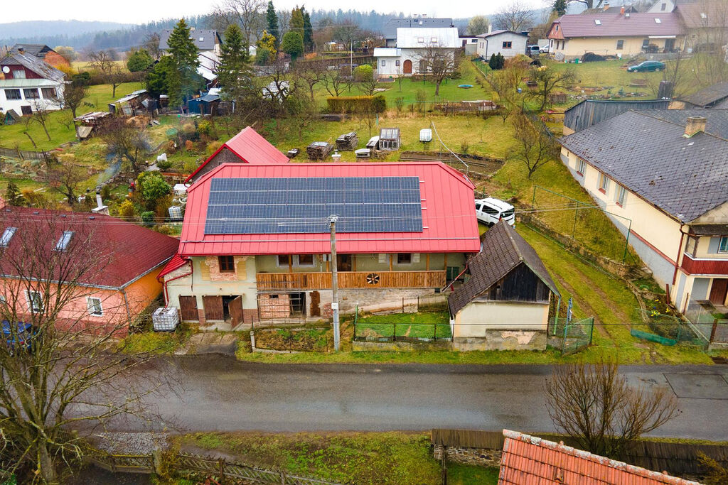 Nabízíme k prodeji moderní rodinný dům o dispozici 1+1, který je ideální volbou pro ty, kdo hledají energeticky úsporný a ekologický způsob bydlení, které vám umožní žít komfortně a s minimálním dopadem na životní prostředí. Tento dům se nachází v klidné a vyhledávané lokalitě, obce Skořice na Rokycansku. Je postavený na pozemku o celkové ploše 1056 m². S láskou a péčí byl poctivě rekonstruován, kdy v domě byla nově vedena elektřina v mědi, voda a odpady v plastu. Na nové sedlové střeše (vč. krovu a věnce) je položená kvalitní plechová střecha zn. Satjam, která je v perfektním stavu a zajišťuje dlouhodobou ochranu před povětrnostními vlivy. Fotovoltaická elektrárna o výkonu 9,9 kWp zn. Solax vám zajistí nízké náklady na energie, ekologickou výrobu elektřiny a je nespornou devizou tohoto domu. Možnost dobíjení elektrických vozidel v garáži, je ideální pro majitele elektromobilů. Akumulační kamna se nahřejí ze solárních panelů a v noci krásně hřejí. Druhým zdrojem tepla jsou kamna v kuchyni. Pro ohřev vody je potřeba osadit boiler a je nutno zřídit ČOV. Retenční nádrž 7 m3 pro shromažďování dešťové vody slouží k zalévání zahrady a dalším účelům, čímž šetří pitnou vodu. Obecní voda stojí 560,- Kč za rok. Izolované podlahy v ložnici jsou dřevěné, v kuchyni je položena plovoucí podlaha + dlažba. Na další obytný prostor lze přestavět prostornou půdu. Nastěhování je dle dohody. Blízké lesy a krásné okolí Skořic nabízejí ideální možnosti pro relaxační procházky nebo sportovní aktivity, což vám přinese klid a prostor pro odpočinek i zdravý pohyb. Díky skvělé dostupnosti Plzně (25 km) i menších měst, jako jsou Rokycany (12 km) nebo Mirošov (4 km), máte vše potřebné na dosah a zároveň si užijete klid vesnického života. Tento dům je ideální pro moderní rodinu nebo jednotlivce, kteří hledají kvalitní a energeticky úsporné bydlení s nízkými provozními náklady. Přijďte se přesvědčit na prohlídku a objevte toto místo osobně. Zavolejte nám a těšte se na prohlídku.. S hypotékou si nedělejte starosti, vyřídíme ji za vás. PENB je prozatím stanoven na hodnotu G, bude vyhotoven.
