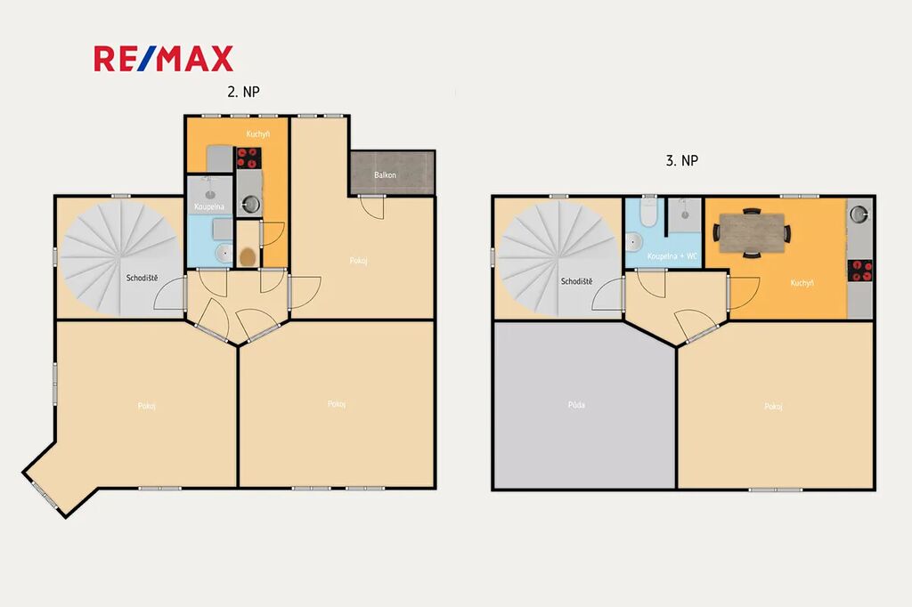Třetí podlaží je podkrovní, nabízí předsíň, kuchyň, pokoj, koupelnu se sprchou a WC. Také půdu.